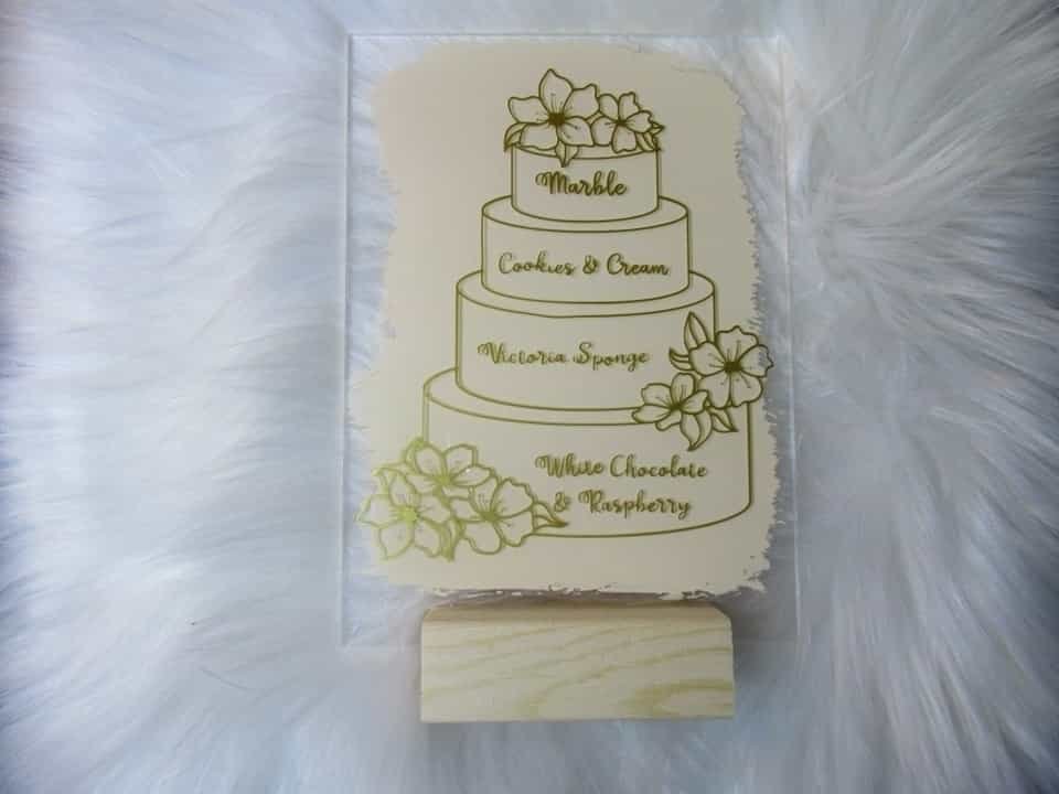 Love creating these signs for wedding cakes. Great addition to that cake table and allows your guests to know what flavour cake you’re having.